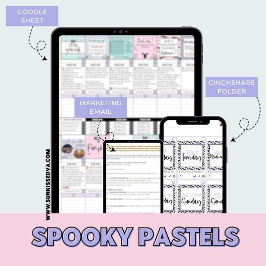 Spooky Pastel Content Calendar & 92 Engagement Graphics
