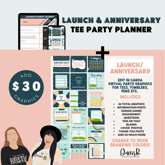 Anniversary & Launch Business Tee Party Planner & 46 Editable Party Graphics