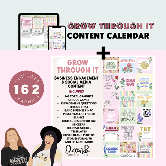 Grow Through It Content Calendar & 162 Engagement Graphics