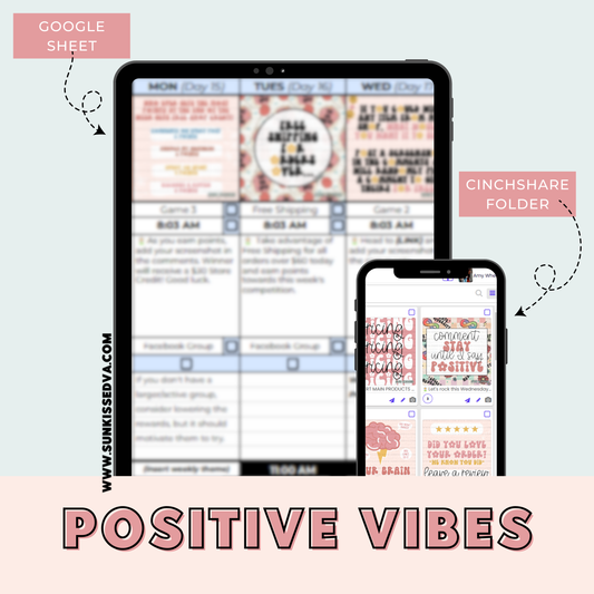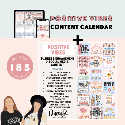 Positive Vibes Content Calendar & 185 Engagement Graphics