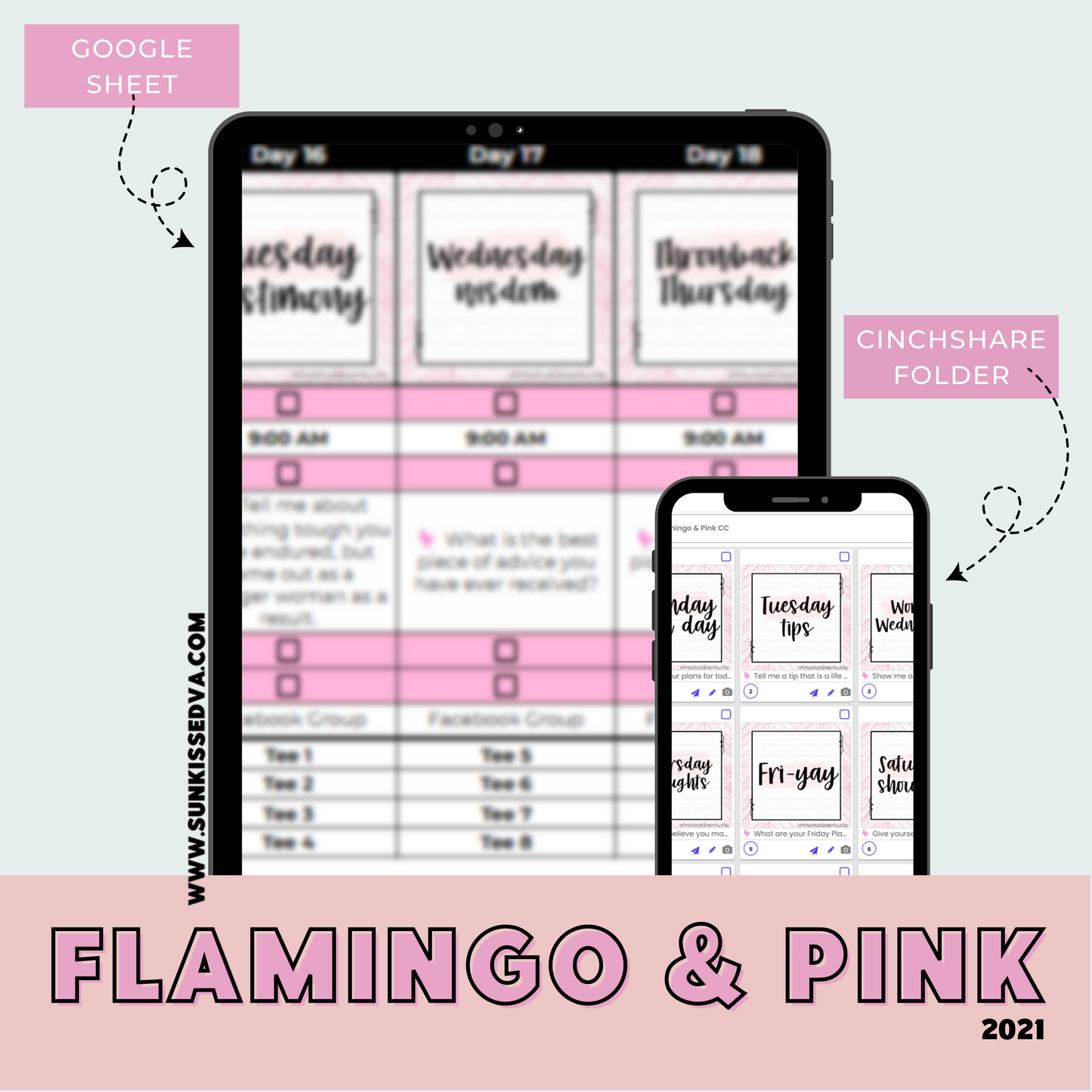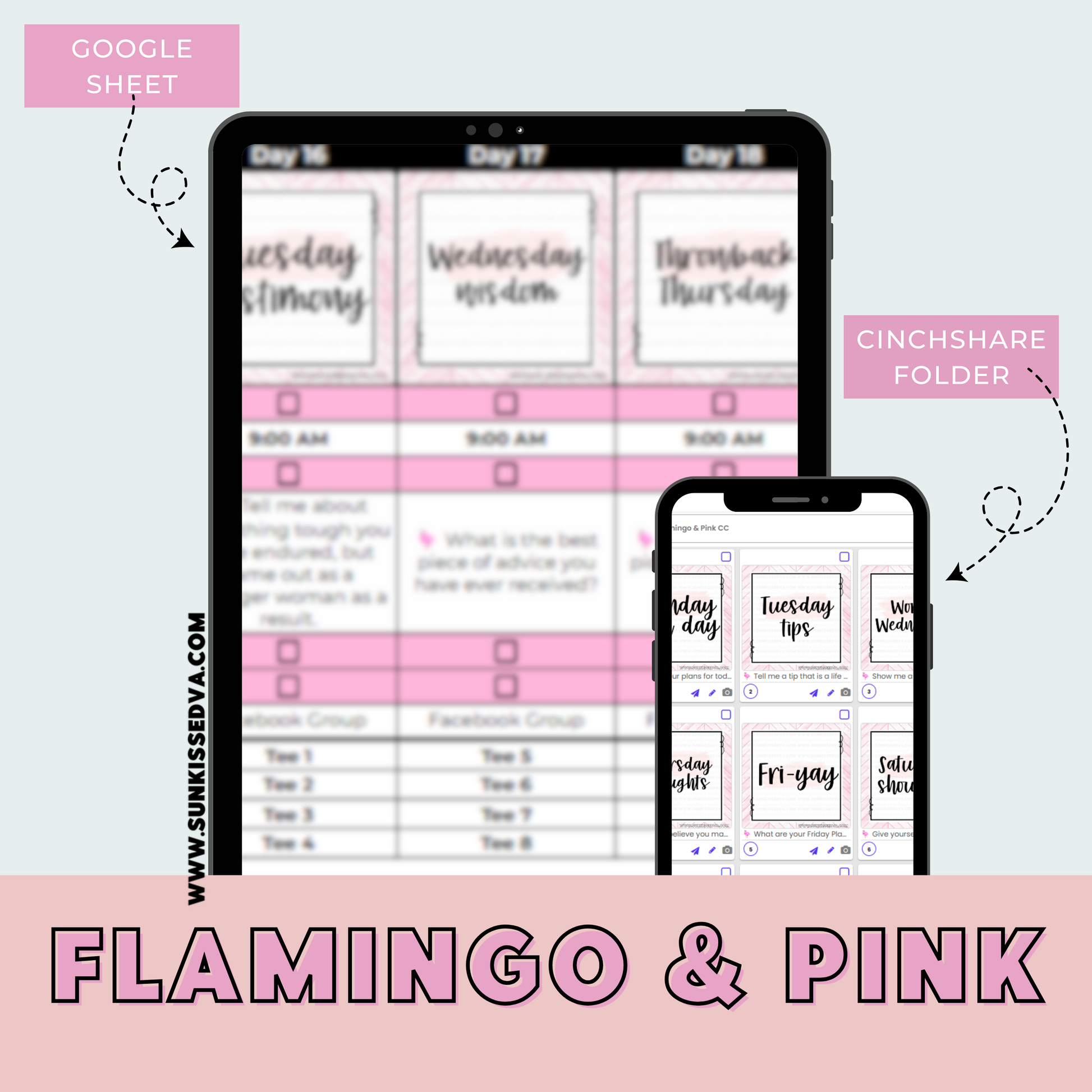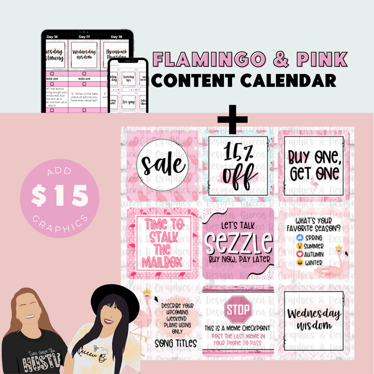 Flamingo & Pink Content Calendar & 70 Engagement Graphics