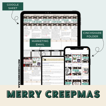 4️⃣ CinchShare Folder Convenience: To streamline your content scheduling, I've organized all the digital delights in a CinchShare folder. You can schedule your posts in under an hour, making your Creepmas preparations a breeze.