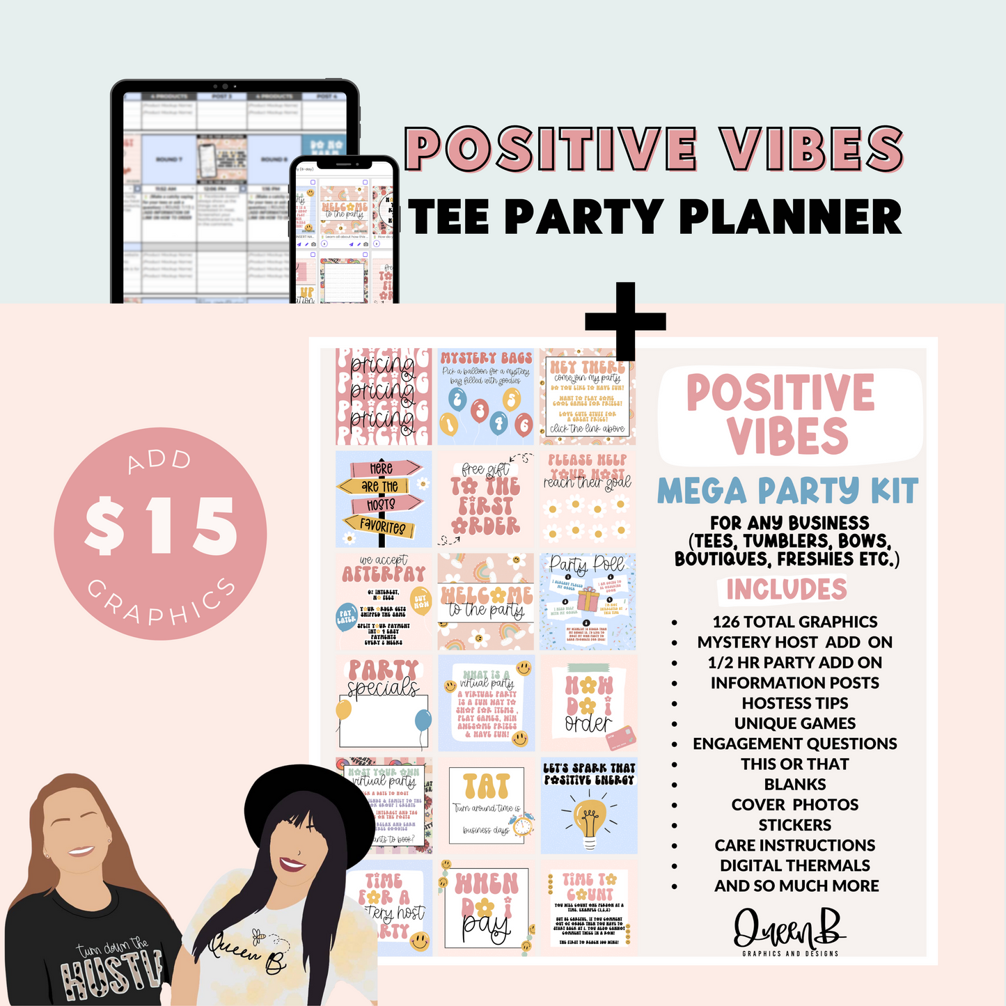Positive Vibes Tee Party Planner & 126 Party Graphics