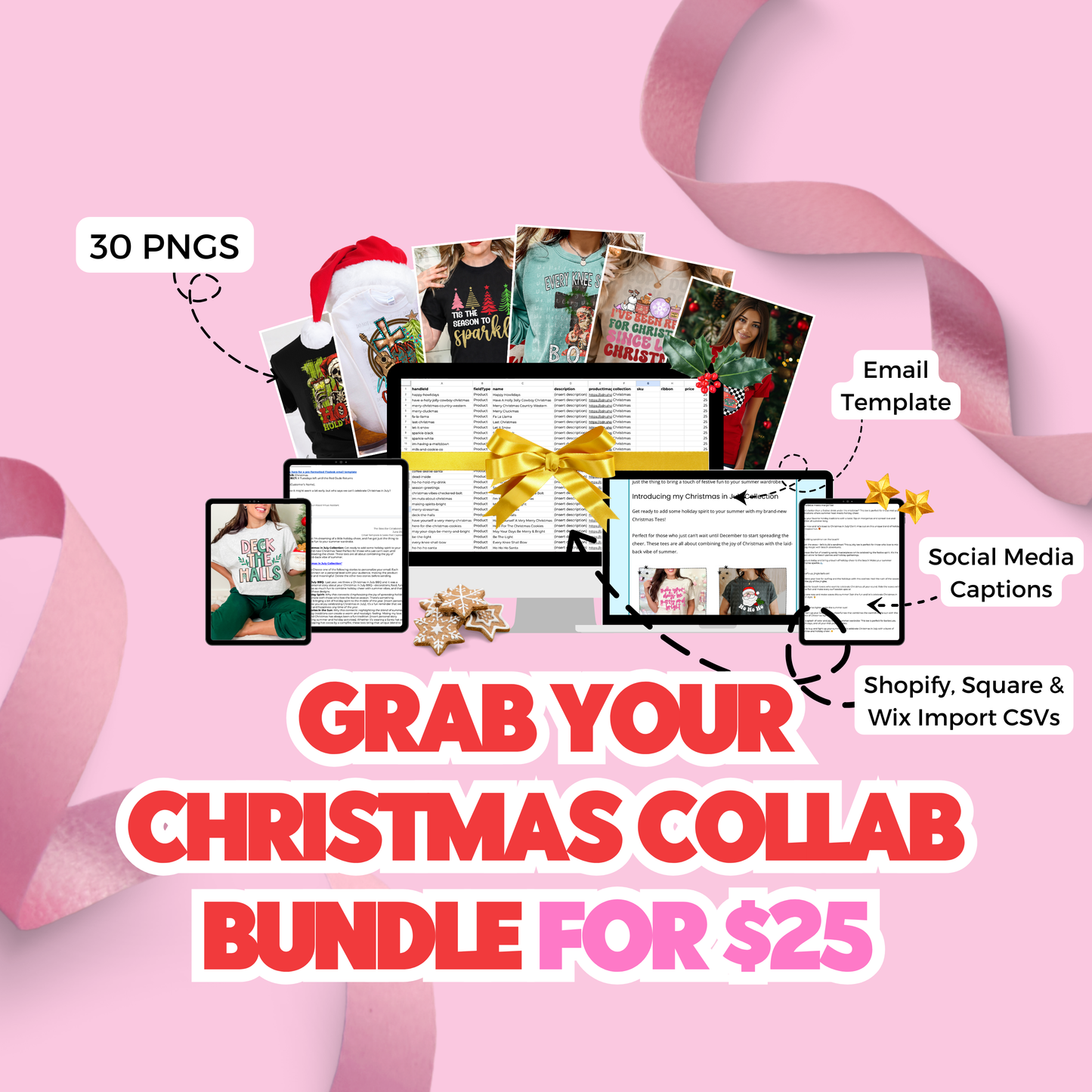 For $25 (valued at $165), you will receive 30 graphics, an email sales template, 5 sales captions, Shopify CSV, Square CSV and Wix CSV.